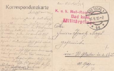 gelaufen: 1915 mit Stempel Bad Ischl