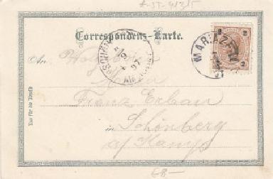 gelaufen: 1897 mit Stempel Mariazell und Nachporto